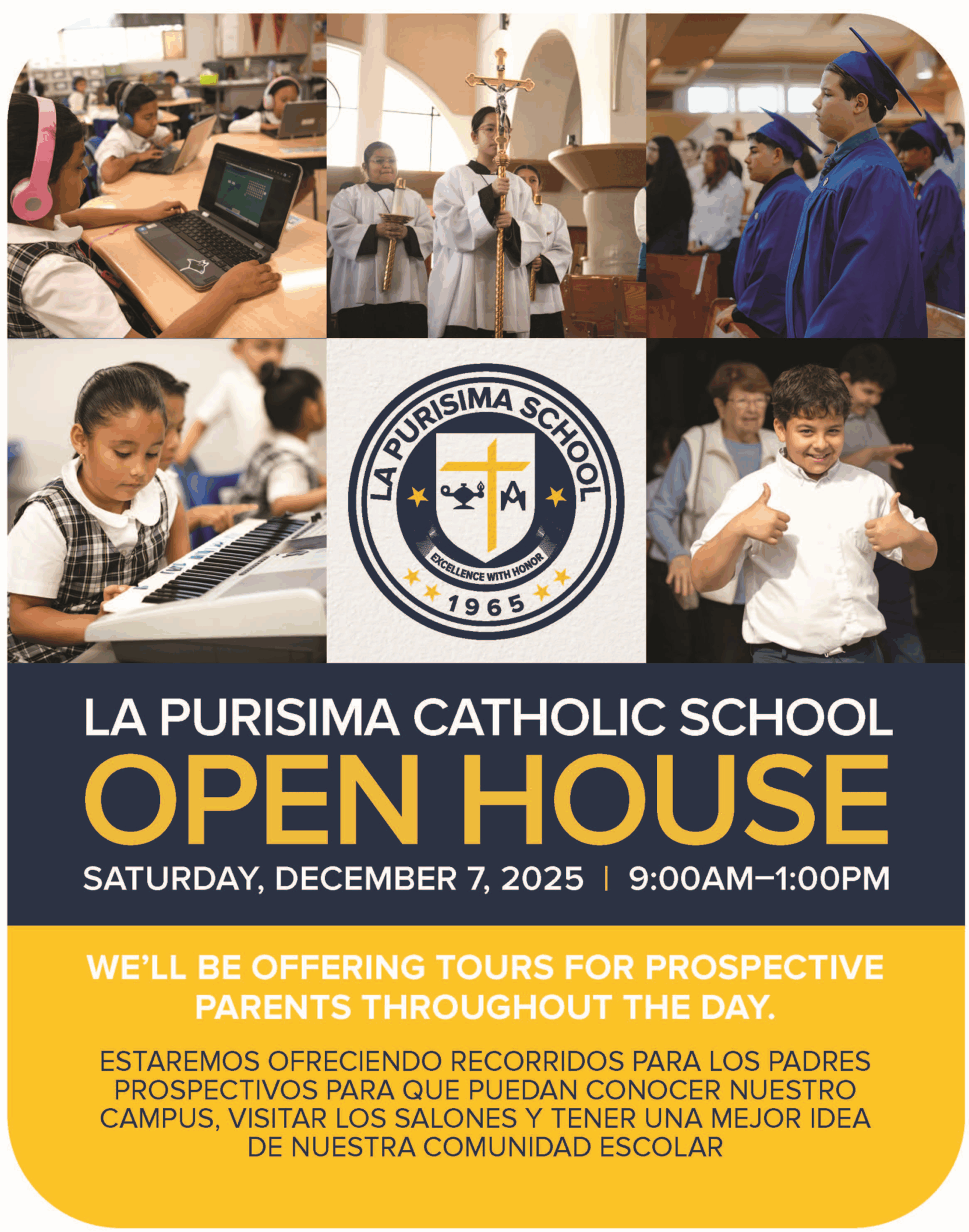 Home Events - La Purisima Catholic Church Family Ministry La Purisima School La Purisima School Open House La Purisima School Open House For more information, please contact Principal Rosa Ramirez: [email protected] / 714-633-5411 + Add to Google Calendar + iCal / Outlook export Date Dec 07 2025 Expired! Time 9:00 am - 1:00 pm Location La Purisima School 11712 Hewes Street Orange, CA 92869 Website https://www.lpcs.net/ Phone 7146335800 Category Family Ministry La Purisima School Share this event